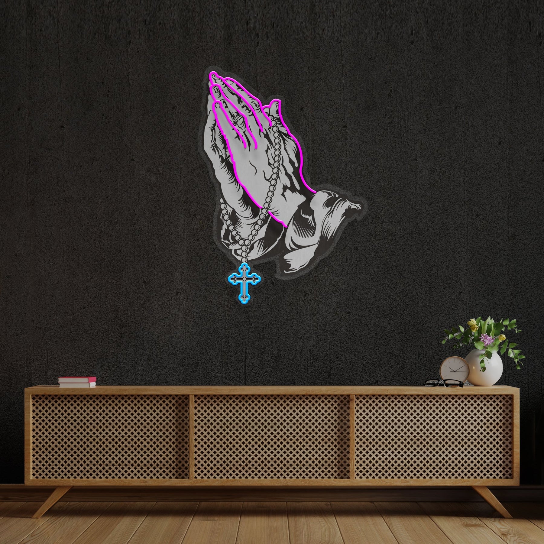 - Made from long lasting, durable and environmentally friendly LED neon strip, mounted on a clear acrylic back board - the sign comes standard with a 3-5 meter clear power cord and power bank.