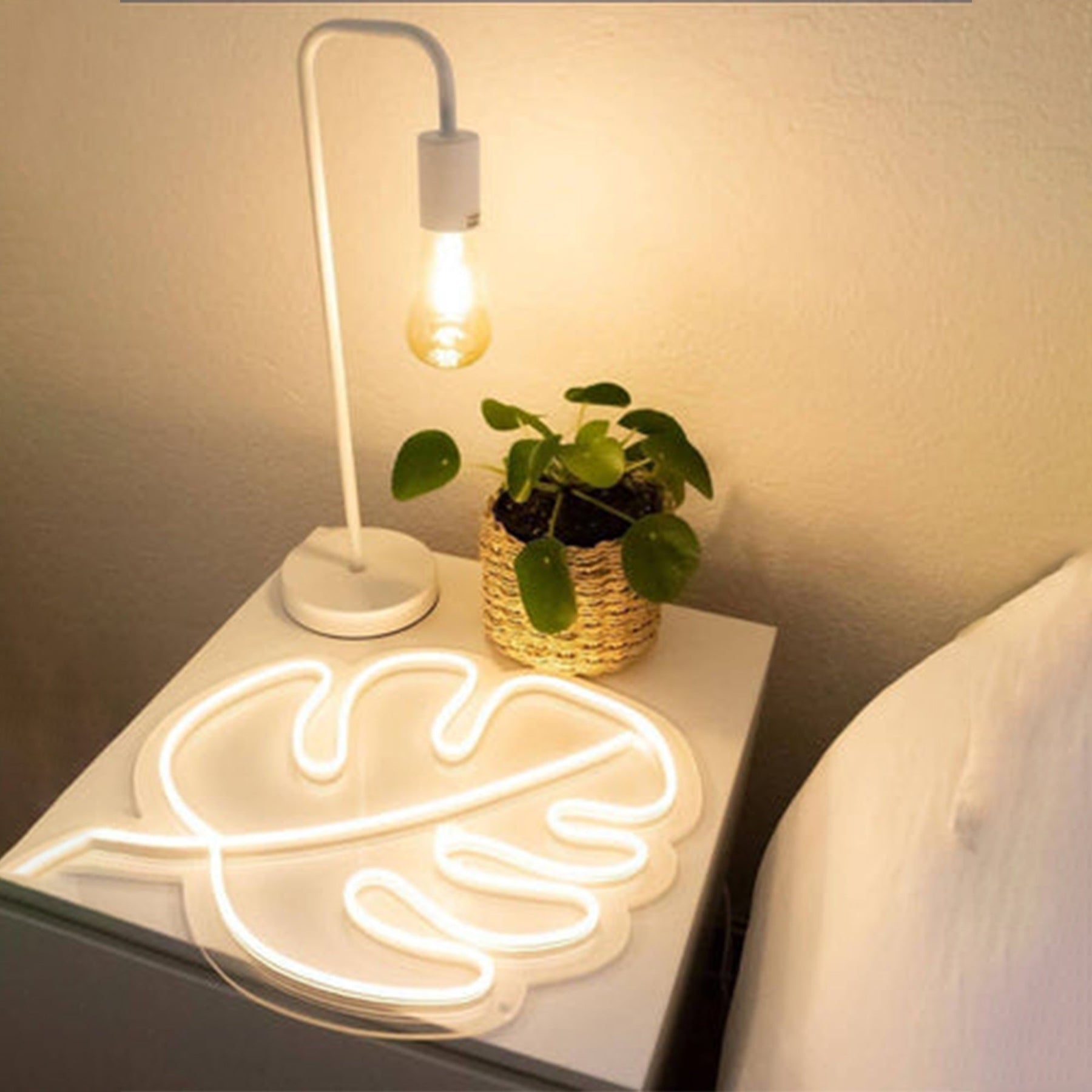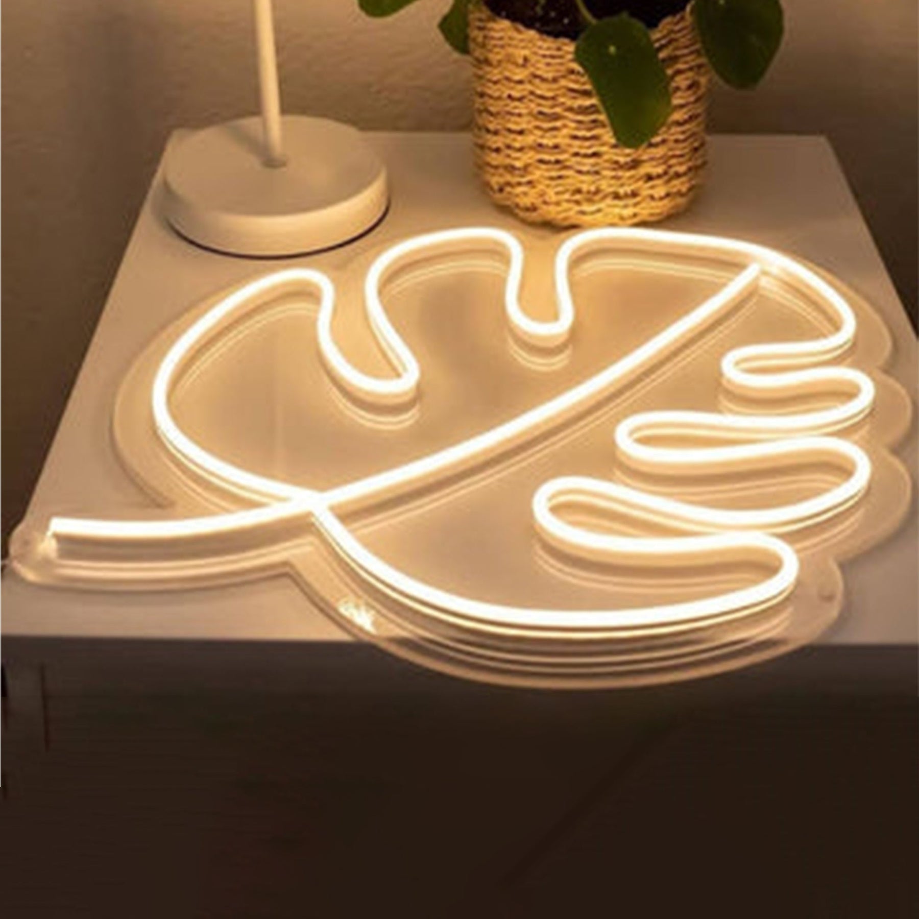 Hanging this Warm White Leaf Neon Sign on the ceiling or walls of your bedroom, game area, garage, coffee shop, restaurant, bathroom, showroom, or home office can instantly transform the space and make it feel more inviting. Show your loved ones how much you care by giving them one of these neon signs. The neon light is softer, brighter, safer, and more durable than conventional glass neon lights because of the use of flexible silicon LED strip lights and a thickened acrylic backplate. The high-quality LEDs in this Neon Sign allow for eye-popping hues and a striking appearance even when lit just by moonlight.